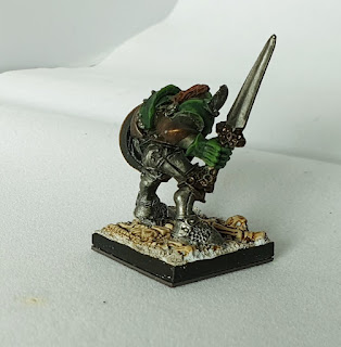 I repainted him several times. My first decision was to paint him green. I got overboard and painted all armour green. Looked good, but did not fit into the whole scheme, as he did not have any silver parts.